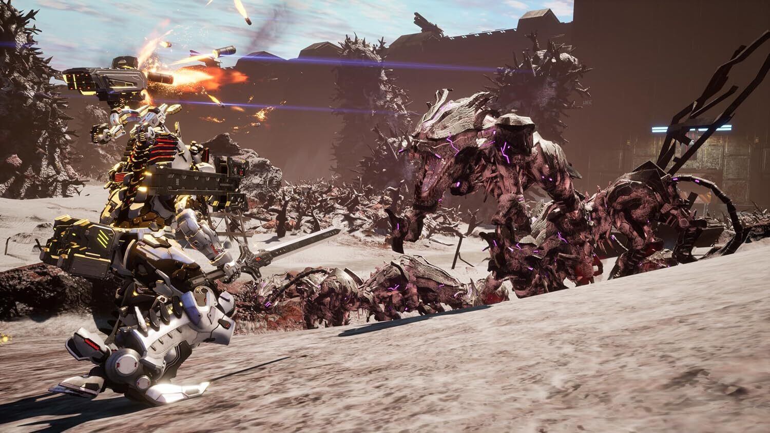 多様な装備を組み替えて作るアーセナルを身に纏い、銃声と咆哮が響き渡る戦場に身を投じるメカアクションゲーム。