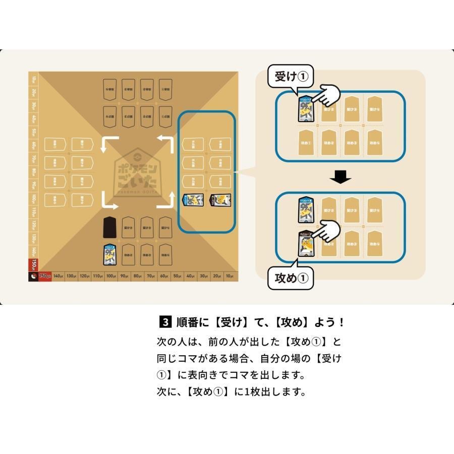 『ポケモンごいた』は、誰がいちばん早く8枚のコマを出すことができるかを競う非常にシンプルなルールですが、運と読み合いが絶妙に絡み合う奥深さが特長のゲームです。