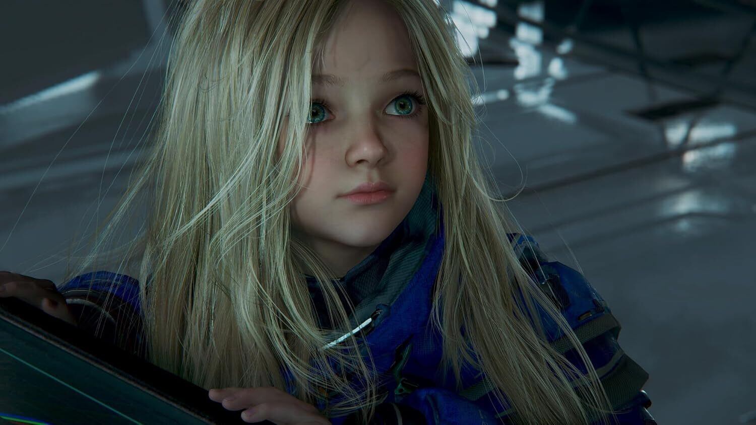 宇宙服姿のヒューとアンドロイドの少女ディアナ。