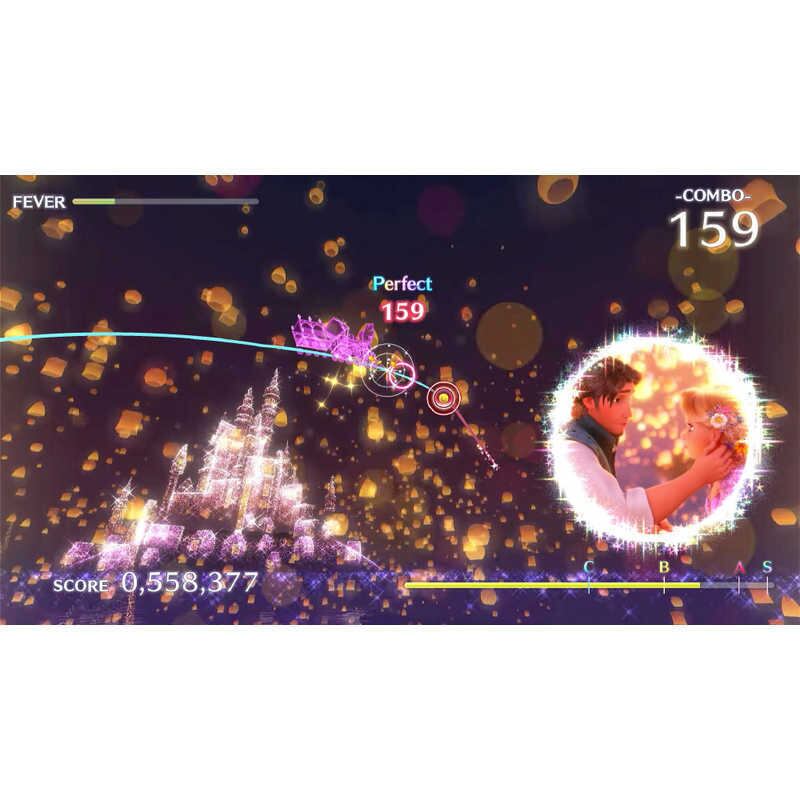 ディズニー楽曲とともにディズニー・アニメーション作品の名場面を再現した、光かがやくステージを駆けめぐるリズムアクションゲーム!